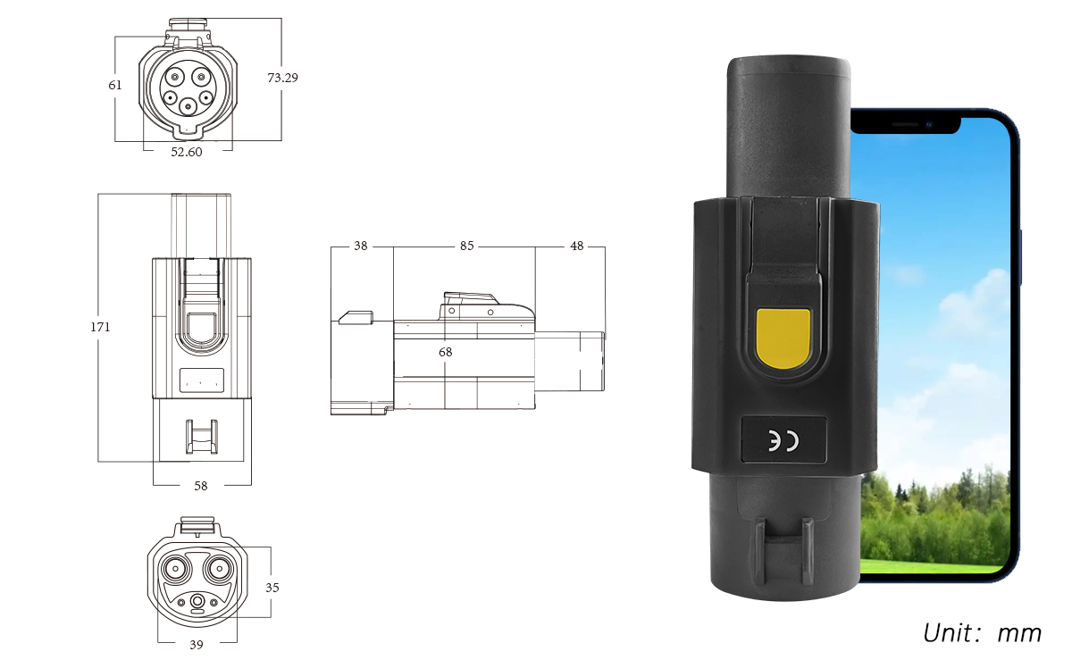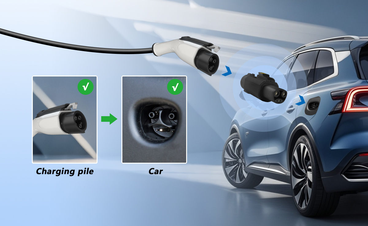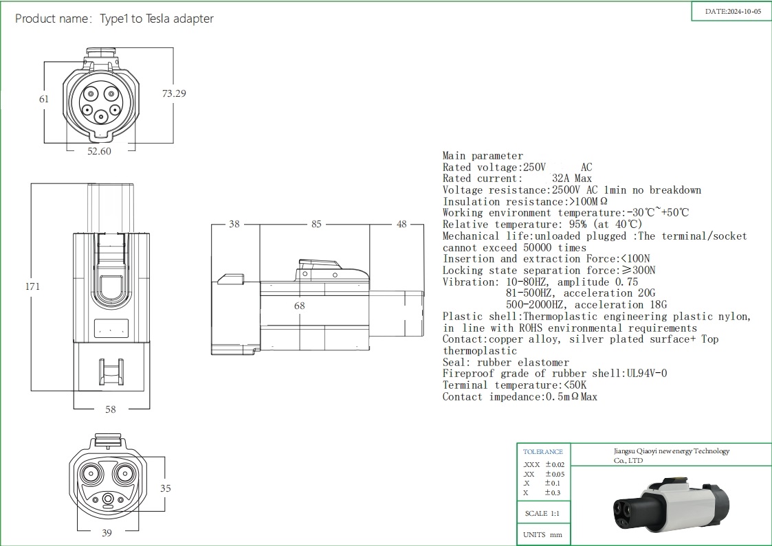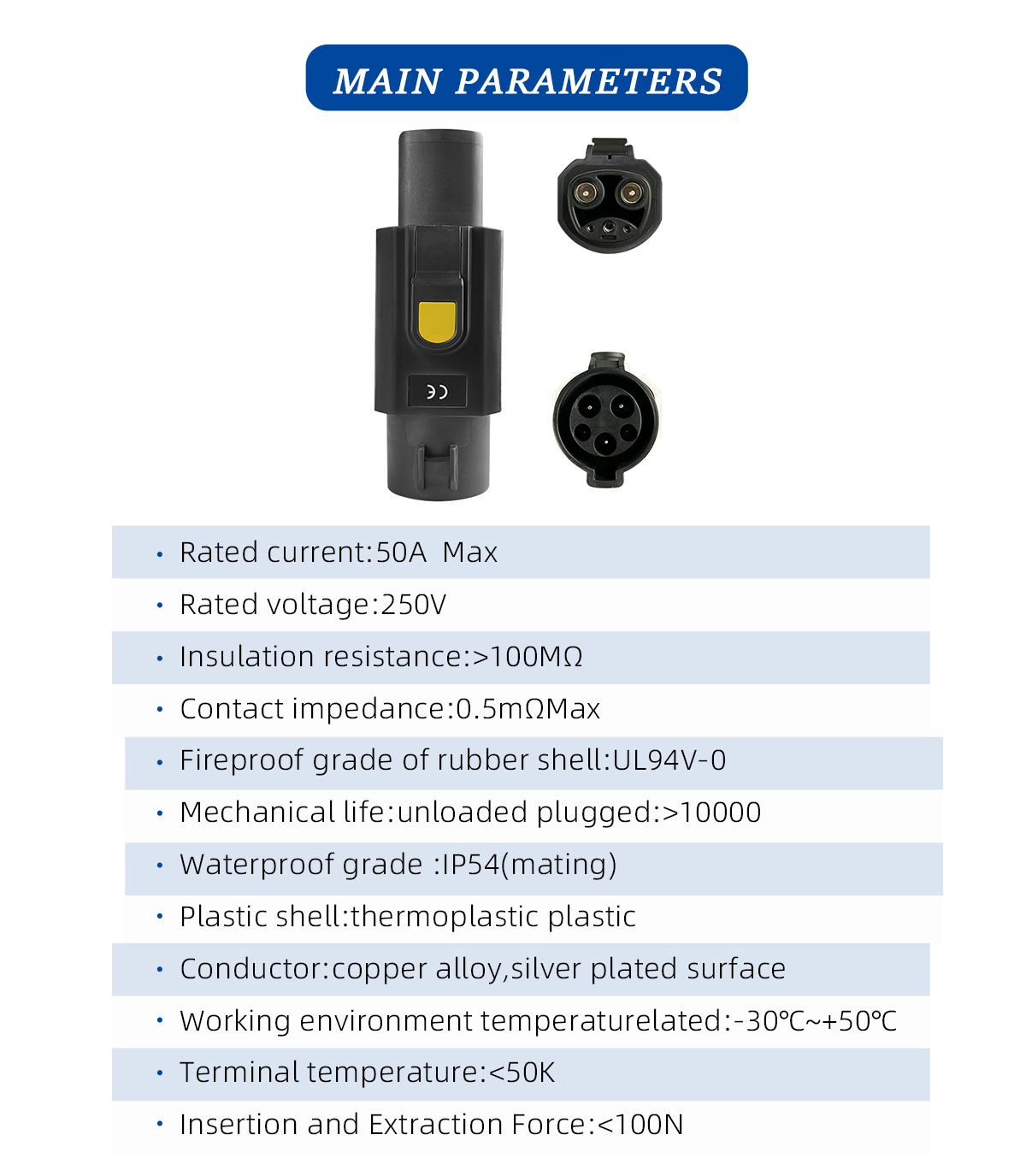 EV Charger type1/J1772 to Tesla Adapte 32A 7kw 250V Compatible with SAE Type1/J1772, EV Type1/J1772 to Tesla Adapter