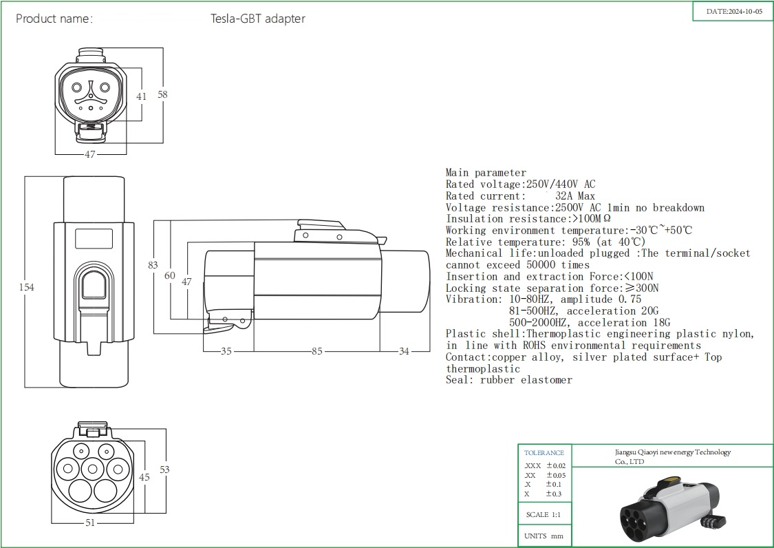 EV Charging NACS to GBT Converter Single Phase Charging Adapter for GBT Electric Vehicles