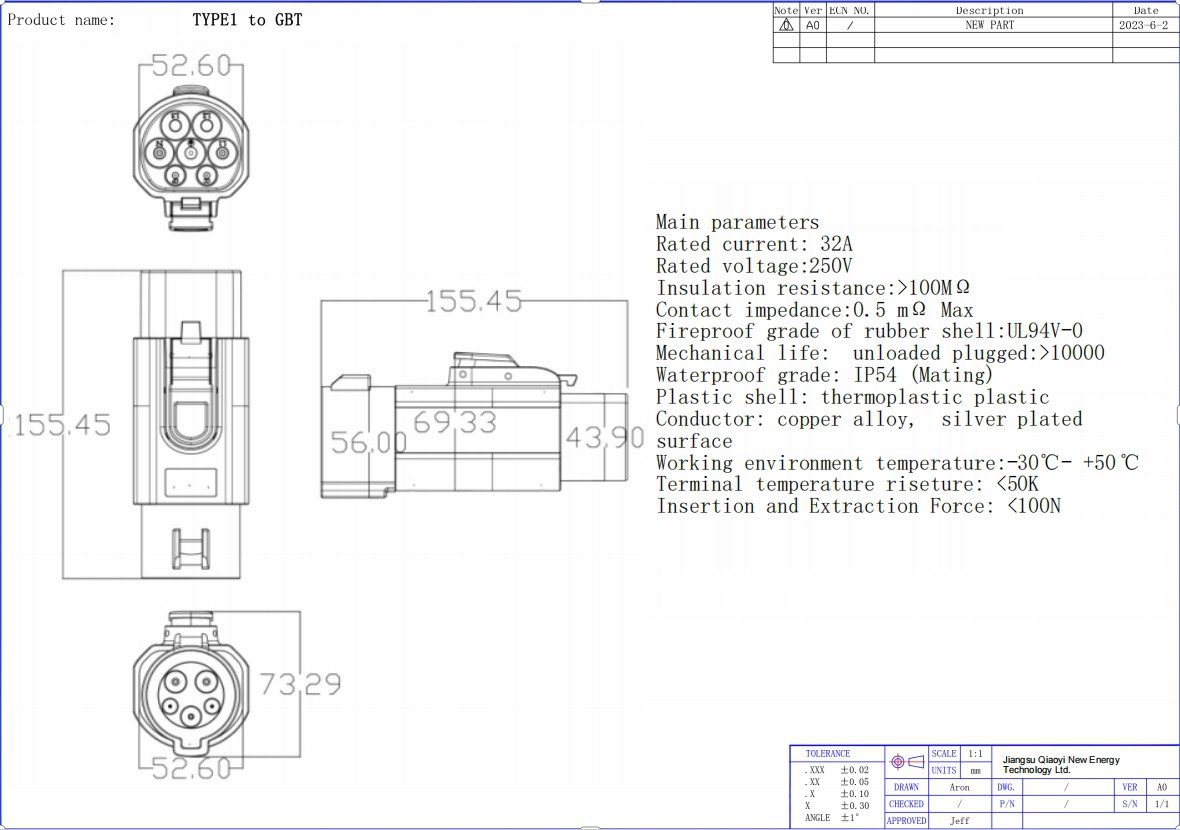 EVqiaoyi J1772 to GB/T adapter Anti-theft EV pile type1 to GB/T Car Charging Adaptor For BYD JAC
