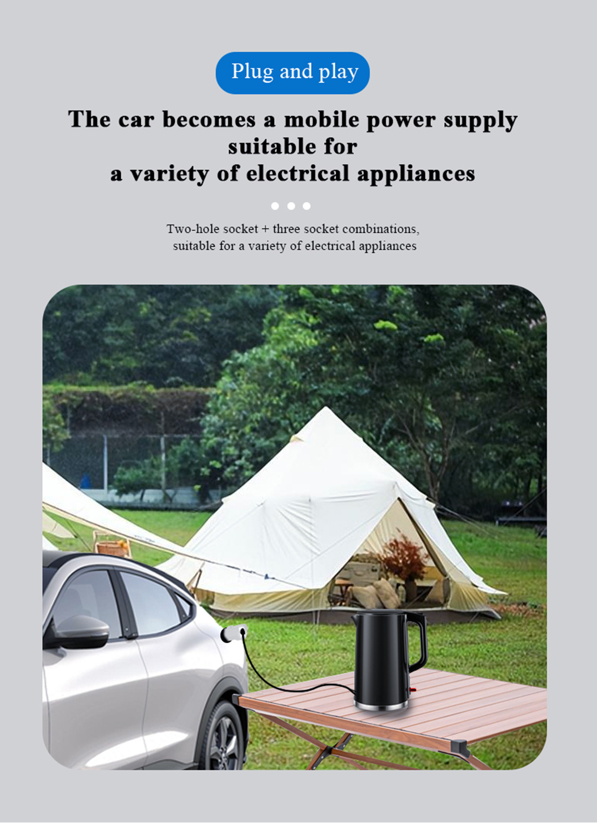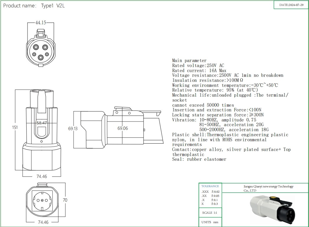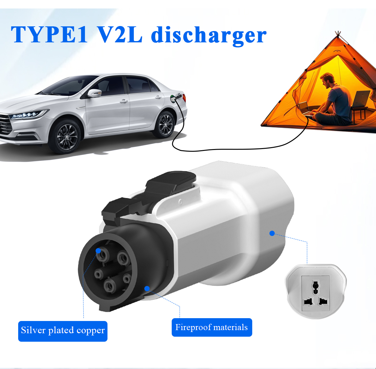 EVqiaoyi J1772 Type1 V2L Adapter 16A 250V Portable EV Discharger for Hyundai Ioniq 5/6, Kia EV6/EV9, MG ZS EV