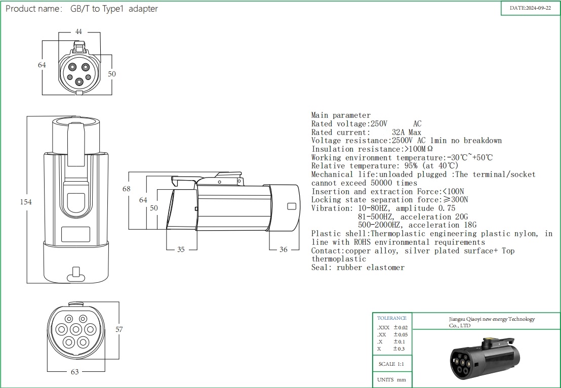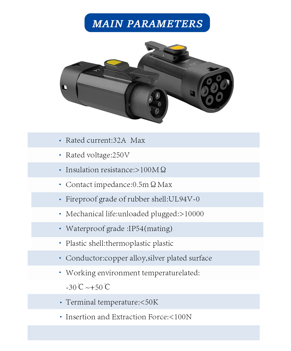 GBT to Type1 EV Charging Adapter 32A Charger Converter for SAE J1772 Electric Vehicles