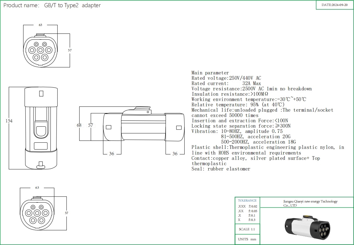 GBT to TYPE2 adapter Electric vehicle AC charging adapter GBT Pile to TYPE2 Car electric vehicle converter