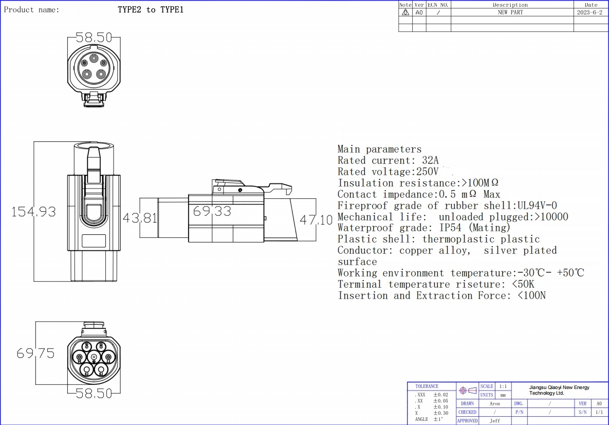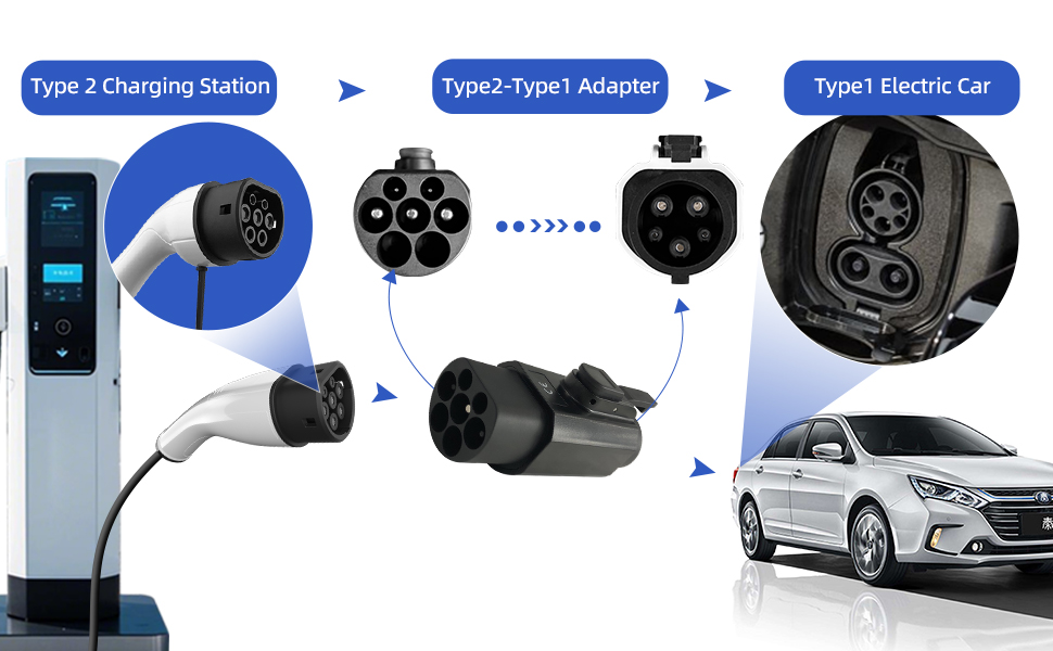 Type 2 to type1 adapter Electric vehicle AC charging adapter type2 Pile to type1 Car electric vehicle converter