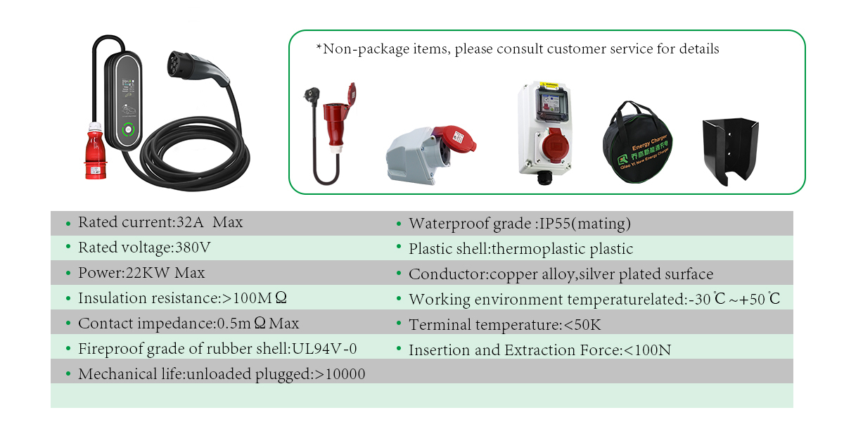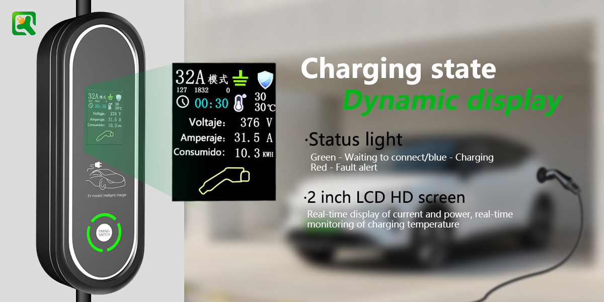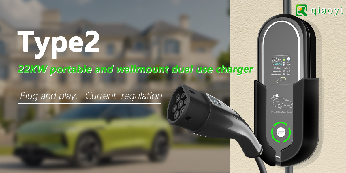 Type2 22kw 380V 32A AC Portable EV Charger with Screen Output Charging Station New Electric Vehicle Charger